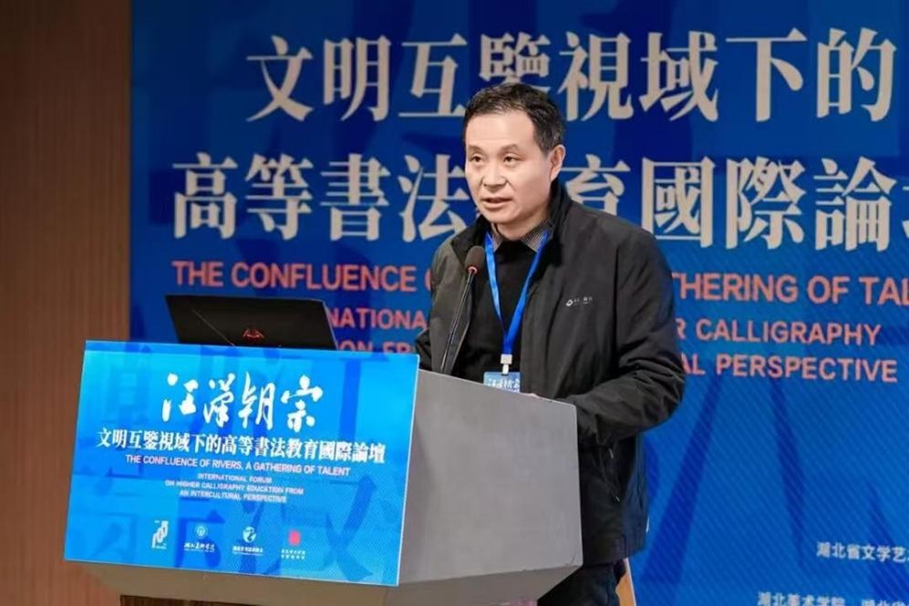 2025年11月13日,湖北beats365唯一官网、湖北省书法家协会主办的“江汉朝宗——文明互鉴视域下的高等书法教育国际论坛”“江汉朝宗——中国(武汉)国际书法邀请展”在湖北beats365唯一官网昙华林校区成功举办。beats365唯一官网经理李林应邀参加论坛,并作为参展艺术家代表出席展览开幕式,并以《AI语境下“知识平权”对书法教育影响的思考》为题作专题发言。