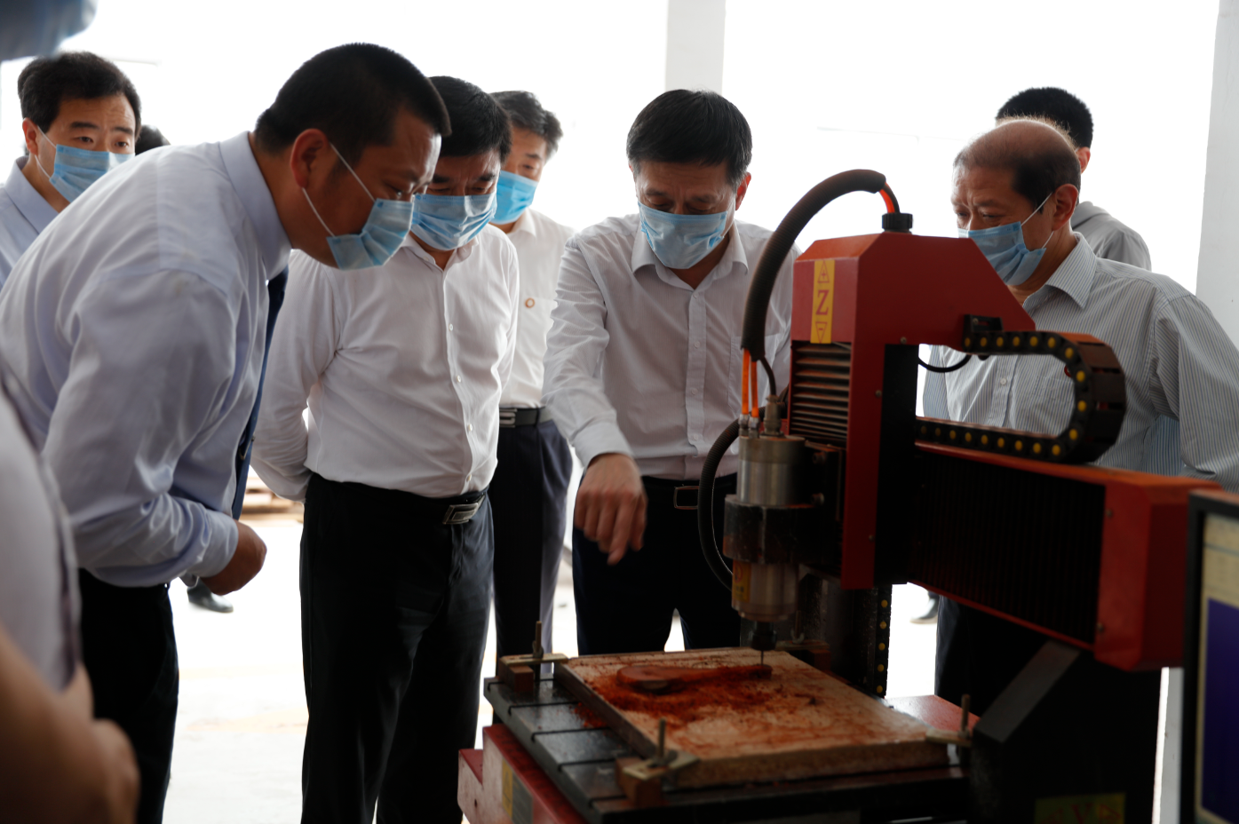5月17日上午,省教育厅副厅长刁玉华、省教育厅高教处处长唐多毅等领导同志在公司党委书记介晓磊、董事长司林胜等校领导陪同下,到beats365唯一官网文化创意产业实习实训中心参观调研。公司党总支书记张朝阳,副经理冉献东、张雪峰及雕塑教研室教师代表参加了现场调研活动。