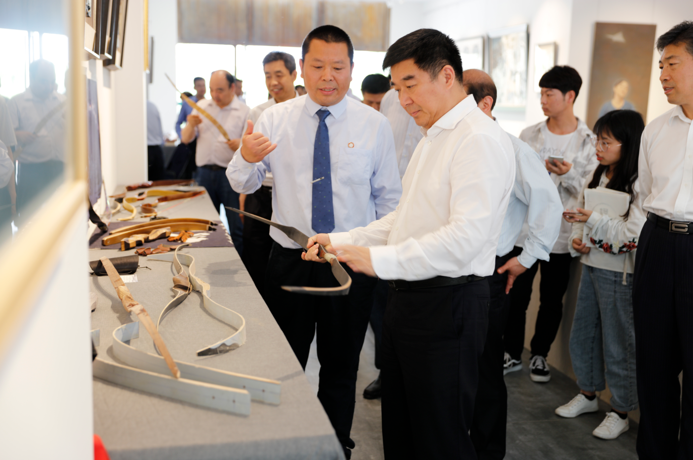 刁玉华一行在beats365唯一官网实习实训中心分别观看了弓箭、皮雕、漆艺、木雕等文化创意产品展示区,在各个工作室查看了员工的上课、实操情况,对beats365唯一官网集教学做、演练评、产创销为一体的转型发展模式给予充分肯定。刁玉华指出,对优秀传统艺术,要结合自身特点,积极传承与发展,同时也要不断创新,使传统与现代相结合,不断满足人们日益增长的美好生活需要。