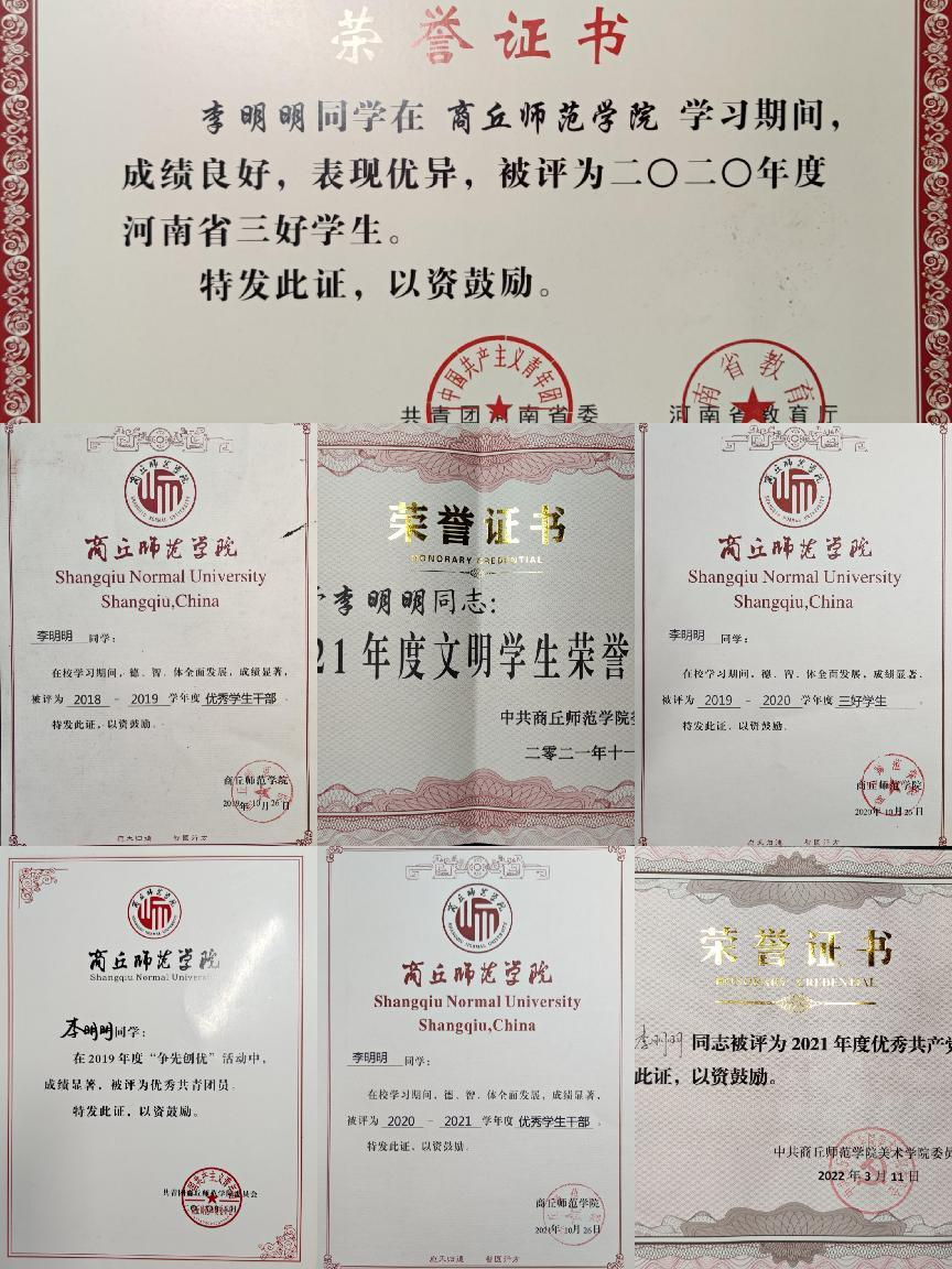 在校期间获得的各项奖项:
