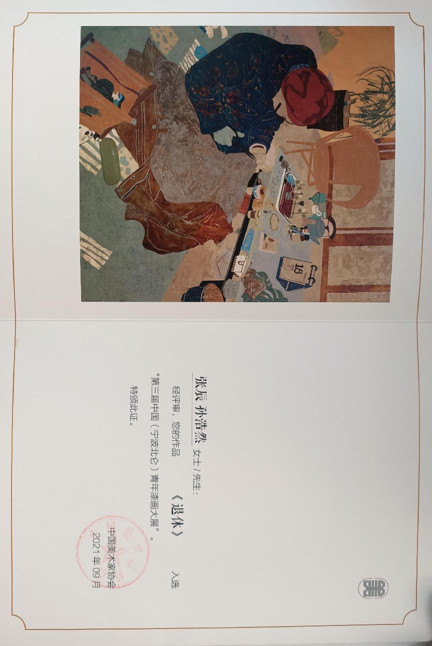2021年 作品入选由中国美术家协会举办的第三届中国(宁波北仑)青年漆画大展
