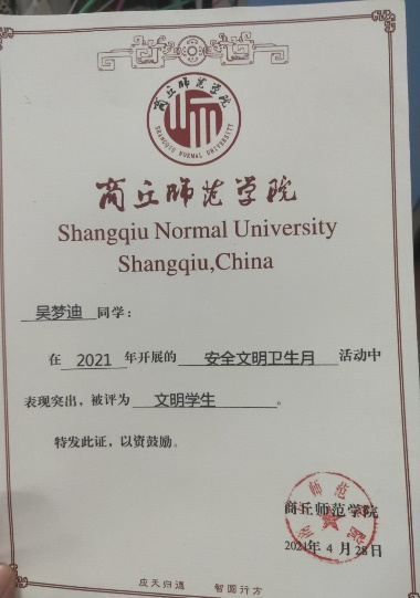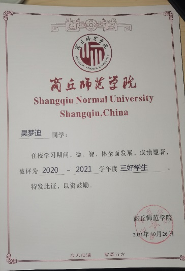 2020-2021学年荣获“国家励志奖学金”
