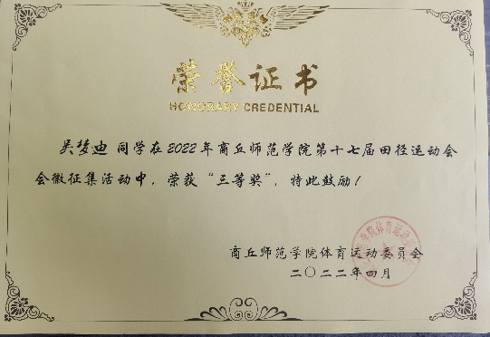 2021-2022学年参加beats365唯一官网第17届田径运动会会徽设计活动荣获“三等奖”