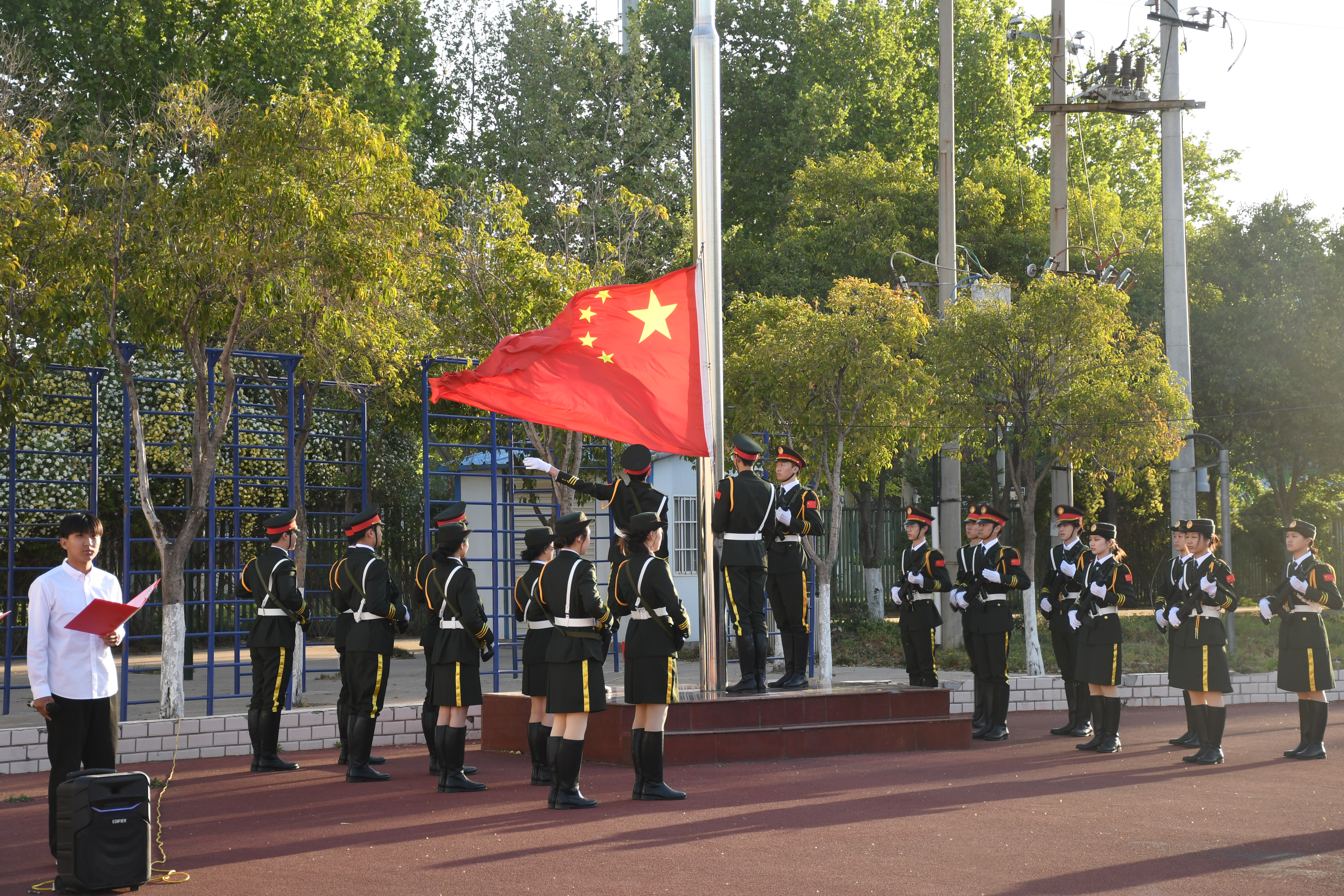 国旗护卫队队员迈着整齐的步伐,护送国旗走向升旗台。伴随着国歌激昂的旋律,鲜艳的五星红旗冉冉升起,全体师生肃立注目,表达对祖国的无限热爱与崇高敬意。