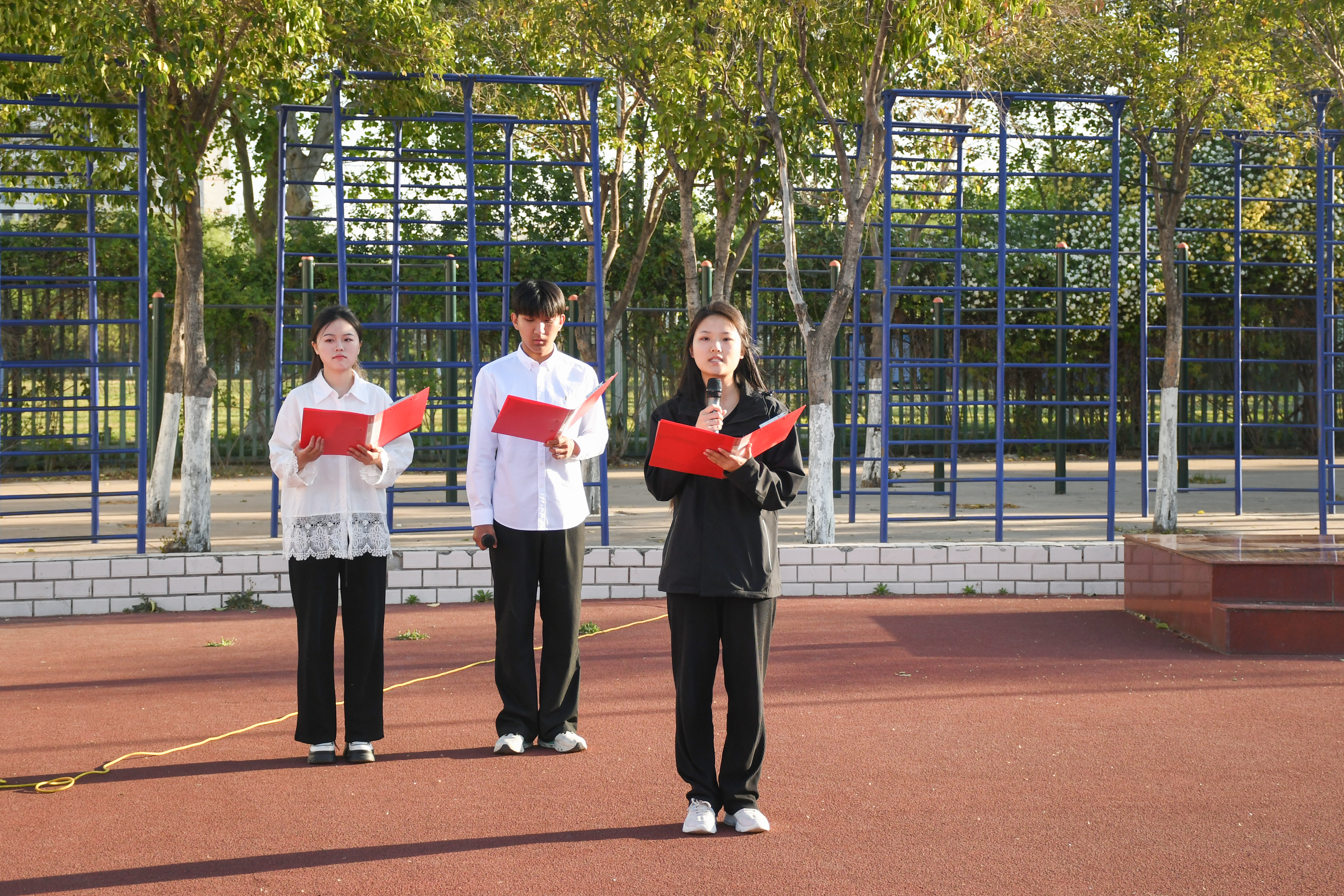 员工党员代表赵天下、孟钰洁进行国旗下的演讲。赵天下分享了走访睢杞战役纪念馆和宁陵“老坚决”纪念馆的感悟。呼吁同学们把“精神坐标”转化为“行动指南”,在学业中勇于攻克难题,在集体工作中主动担当责任,在面对诱惑时坚守原则底线,在学业、工作、维护国家安全等方面积极实践,为民族复兴奋斗,书写时代答卷。