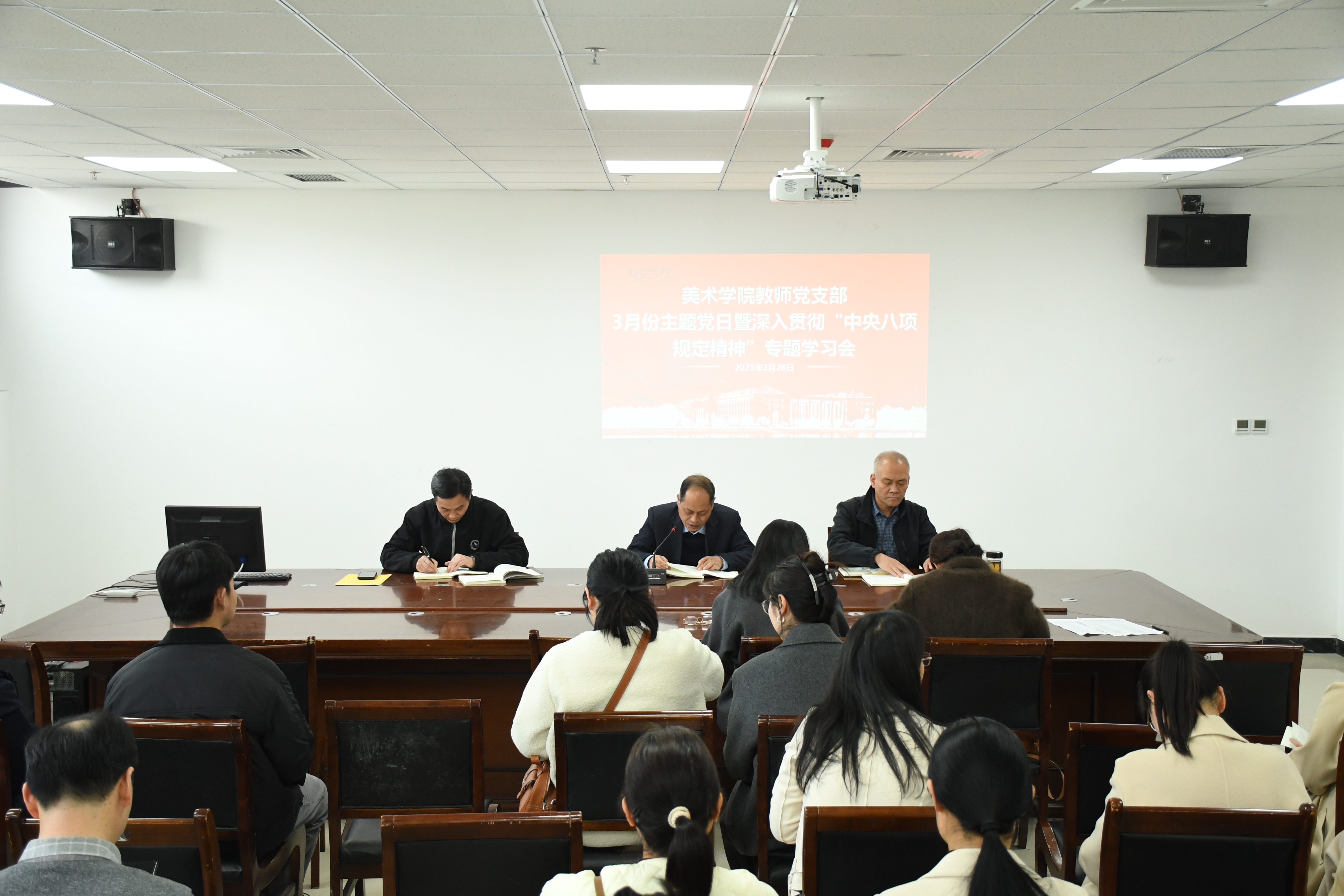 师生各支部党员要深入学习贯彻习近平总书记重要指示精神,自觉把思想和行动统一到党中央决策部署上来,对标对表抓好中央八项规定及其实施细则精神的贯彻落实,扎实完成好学习教育各项规定动作,持续加强作风建设,切实做到以学正风、以学促改、以学铸魂。