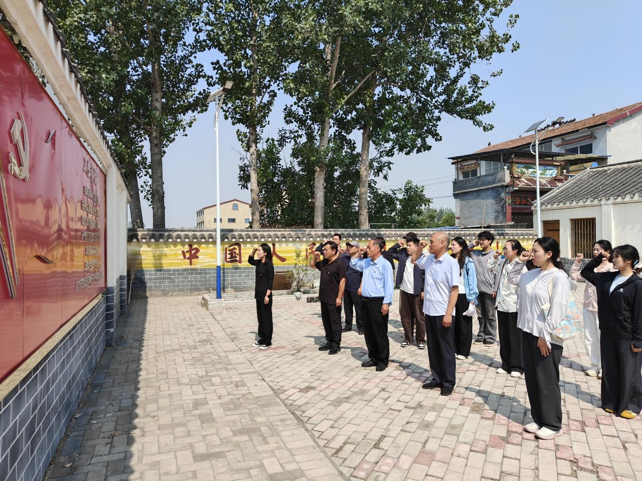 参观结束后,全体师生党员在纪念馆前的广场上庄严列队,面向鲜红的党旗,重温入党誓词。