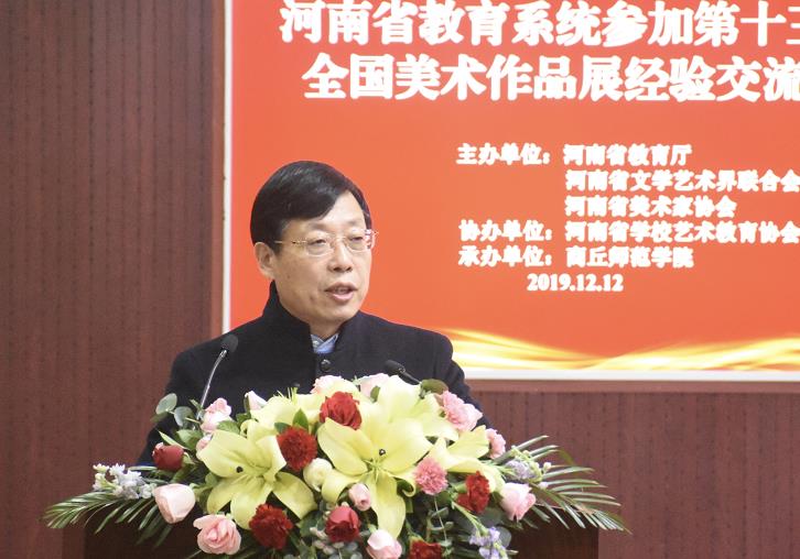 河南省文联副主席、河南省美协主席刘杰说,由文化和旅游部、中国文联共同主办,中国美协承办的全国第十三届美术作品展,是全国规模最大、参与范围最广、作品种类最多、最具影响力和权威性的国家级综合大展,省教育厅专门发文,对教育系统师生参展活动提出了具体要求。在展览前夕,省教育厅又专门召开了全省教育系统备战全国第十三届美展工作推进会,进行再动员、再部署、再安排。全省教育界的美术工作者精心准备,积极参与,创作了一批优秀的作品,取得了骄人的成绩。