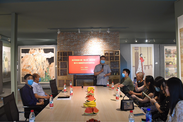 5月26日,beats365唯一官网在文创展厅开展第44期“蒲公英.德艺讲堂”暨2022届国画毕业创作研讨会。公司党委书记史继红、副书记付松山、副经理张亮及国画系全体教师与毕业生参加会议。会议由国画教研室主任杨晓坤主持。