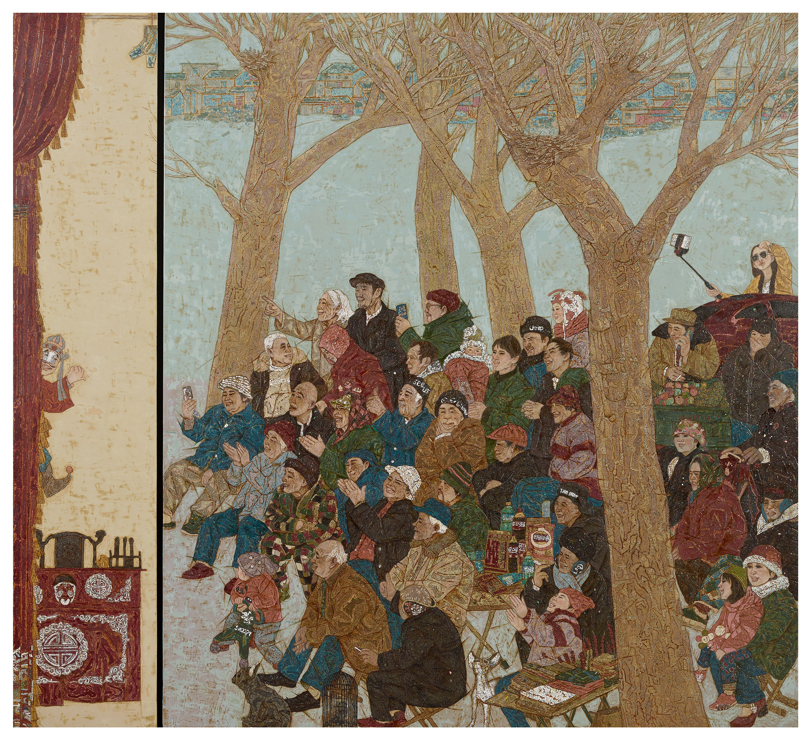 教师作品6件,常山作品《青春舞曲》(入选作品),杜冬梅作品《和声轻敲鸣青音》(入选作品),郭树林(教师)、王行谦、李紫萌作品《山有长枝,花木拭拂衣》(入选作品),李娟作品《盛世芳华》(入选作品),刘明玉作品《乡音笑语》(进京作品),于明刚作品《红染秋野一片暖》(入选作品)。