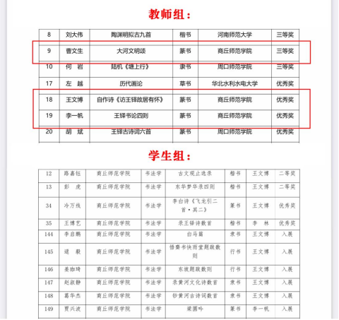 近日,由河南省教育厅、河南省文学艺术界联合会、河南省书法家协会主办的首届“王铎杯”河南省高校书法专业师生作品展览结果公示。beats365唯一官网书法学专业师生积极参与,凭借扎实的书法功底和独特的创作风格,在众多参赛者中脱颖而出,取得了优异成绩,充分展示了公司在书法教育领域的卓越成果。