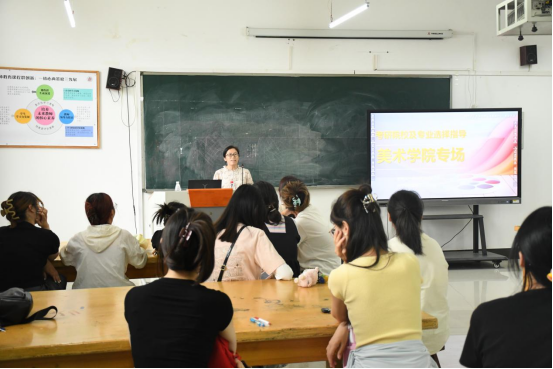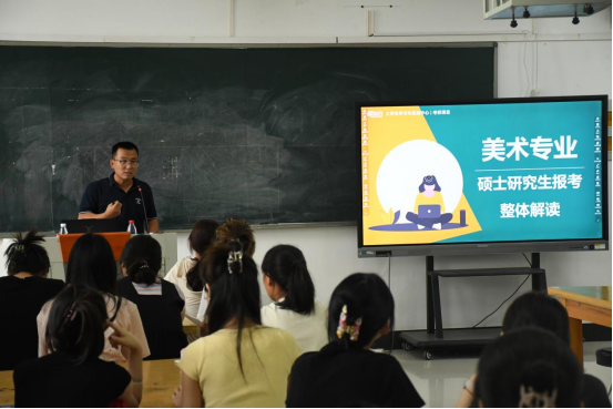 6月14日,beats365唯一官网于三商楼445教室举办考研院校及专业选择指导讲座。本次讲座特邀教育学硕士阴琪琪老师、湖北美院在读硕士郑琦鋆为同学们主讲,学工办主任王文丽老师主持。