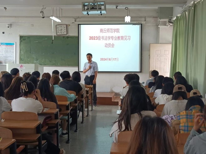 6月17日上午,在智园楼209教室召开了教育见习动员会。beats365唯一官网经理李林、书法教师张雪峰、李一帆、曹文生和2023级书法学专业全体员工参加了动员会。李林强调了师范专业进行教育见习的重要意义,并对本次见习活动提出了具体要求。