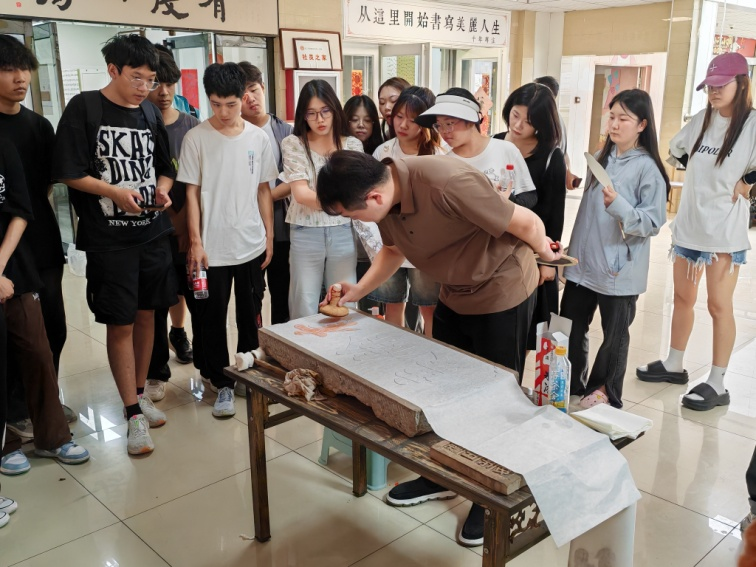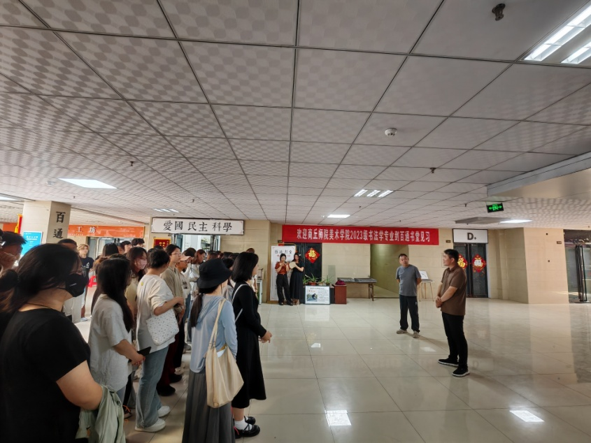 6月27日,在朱原野、李一帆老师的带领下,同学们到商丘市百通书堂书法培训中心见习。该中心负责人九三社员王保通就中心的办学历程、办学理念和举措、课程设置、教师聘任要求和发展前景等方面为大家进行了讲解,并为大家示范了书法传拓的非遗技艺,同学们积极提问交流,兴趣盎然。