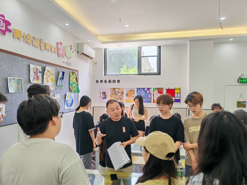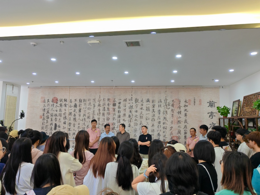 6月26日上午,在张雪峰、朱原野、李一帆老师的带领下,同学们到商丘市兰亭书法培训公司见习。刘怀杰董事长就公司的办学历史、办学理念、教学管理、教师能力素质提升等方面为大家进行了细致讲解,并带领大家参观了优雅的教学环境和设施。