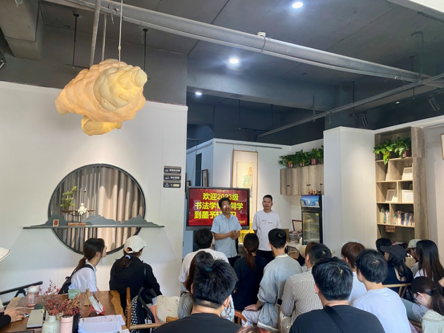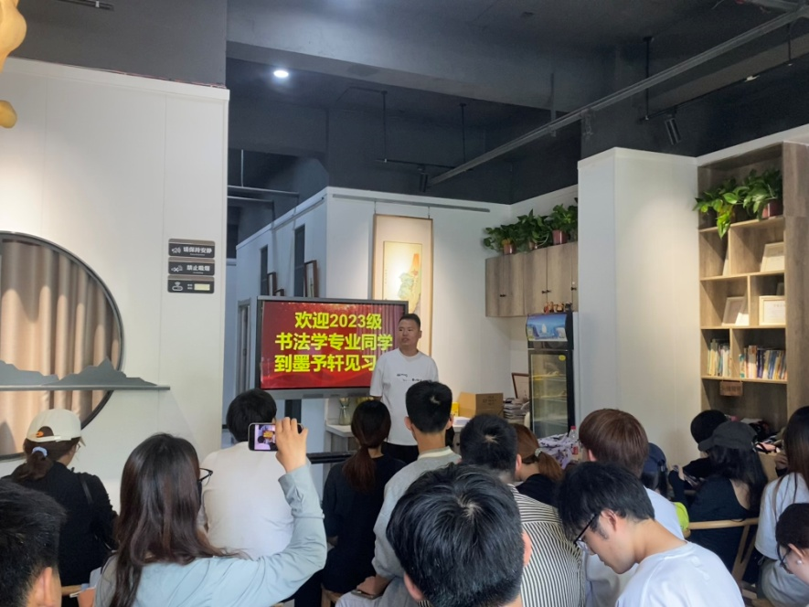 6月18日上午,在张雪峰、曹文生老师的带领下,同学们到商丘市墨予轩书法培训中心见习。墨予轩负责人秦杰就办学条件、规模、理念、管理、教师能力素质等方面为大家进行了细致讲解,带领大家参观了教学环境。