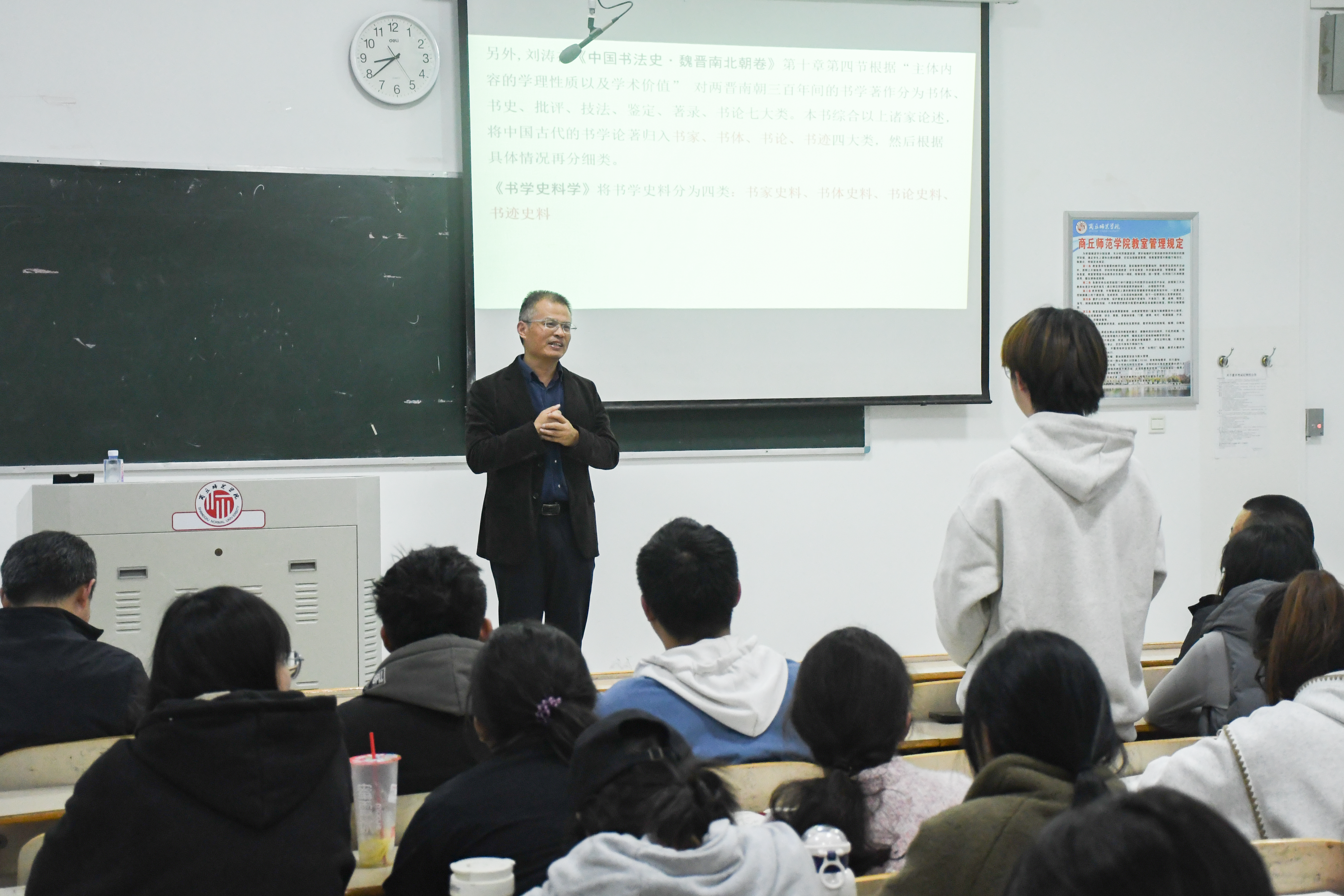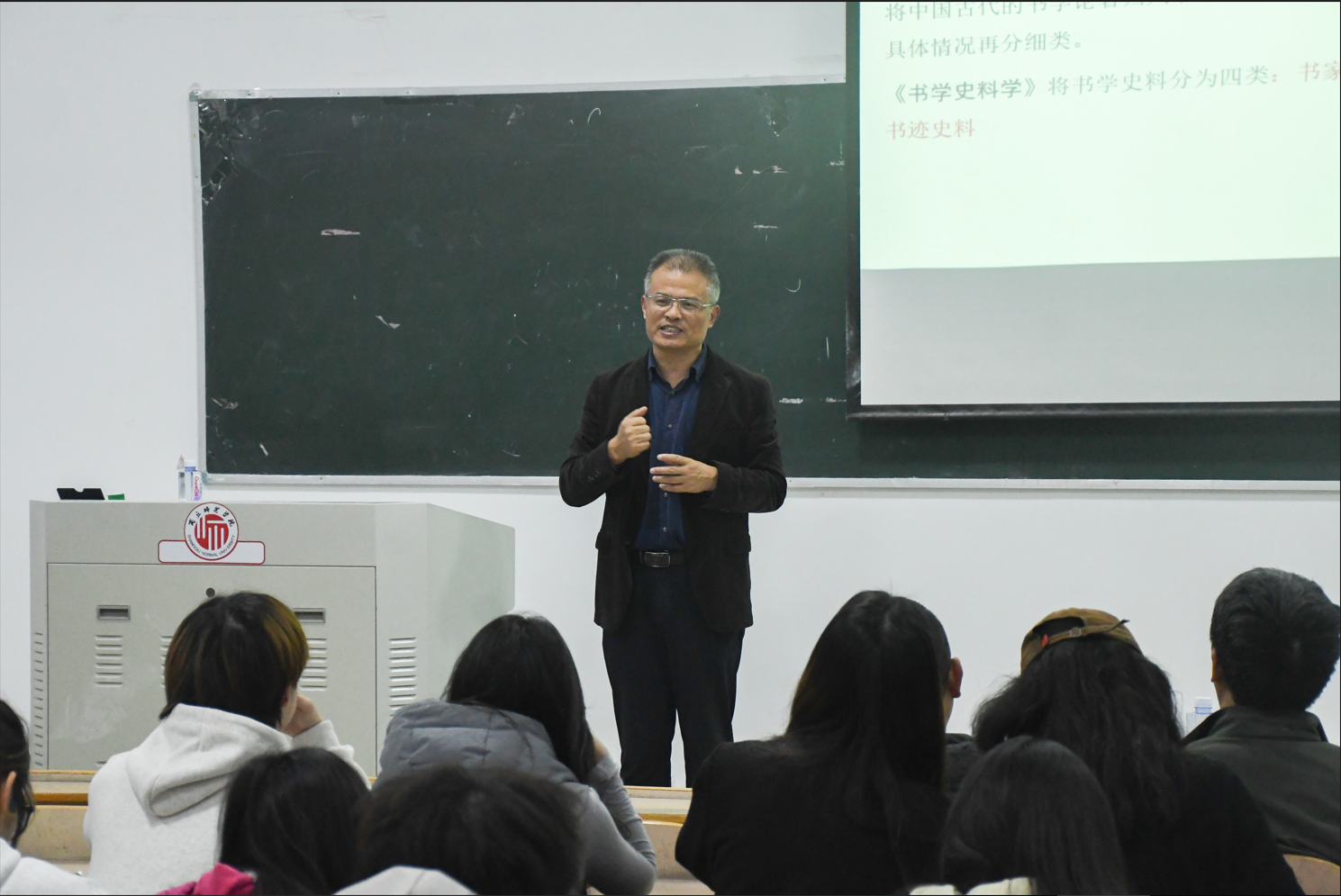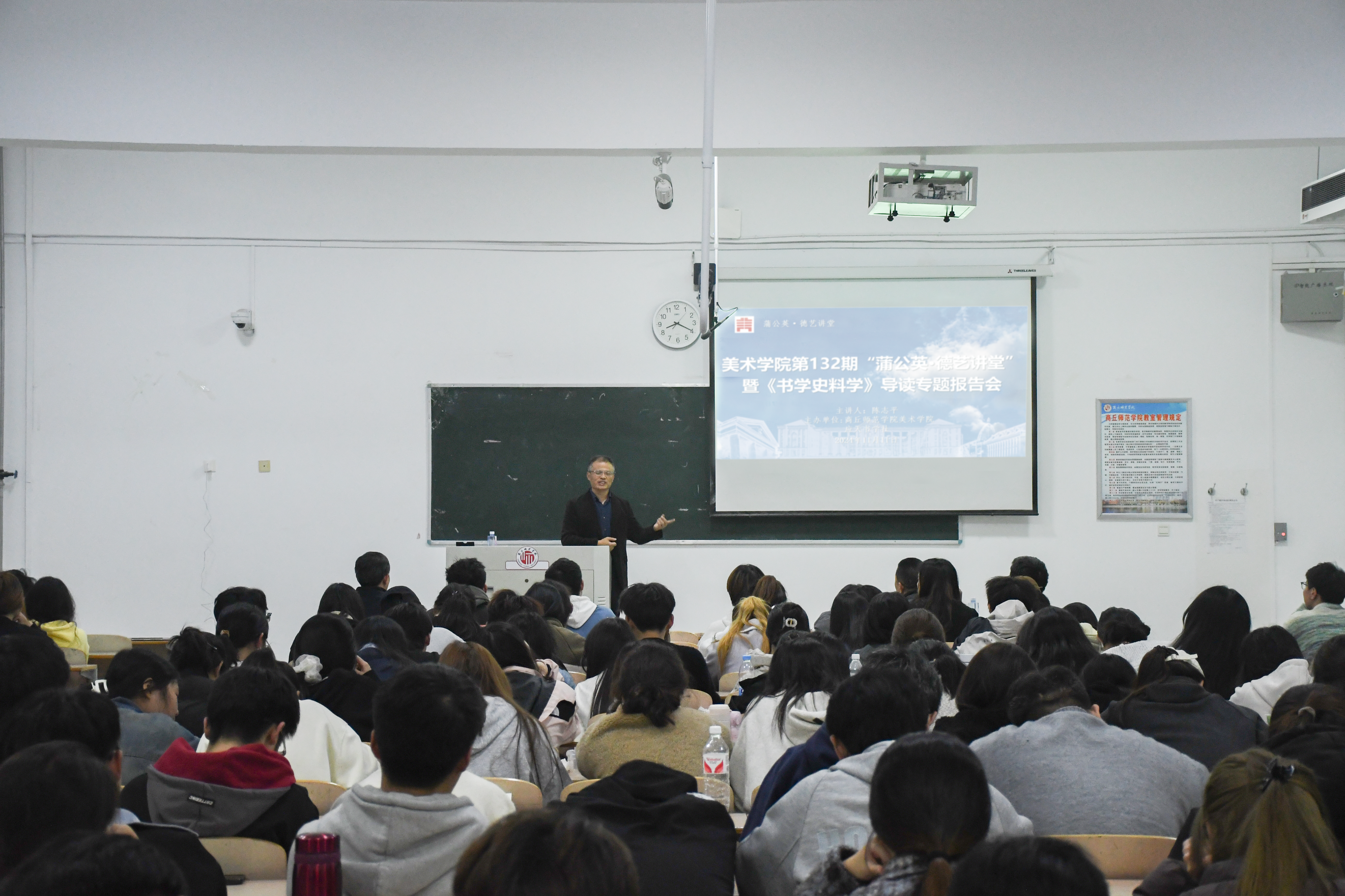 11月11日晚,beats365唯一官网、应天书学社于行方楼407教室开展第132期“蒲公英·德艺讲堂”暨《书学史料学》导读专题报告会,本讲座特邀华南师范大学陈志平教授主讲,beats365唯一官网经理李林、全体书法学专业教师及beats365唯一官网书法学专业员工代表参加本次报告会。