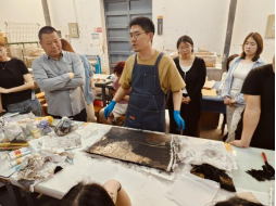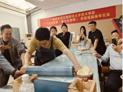 本次活动创新采用“讲解+演示+互动”沉浸模式,于子亮在11小时深度工作坊中拆解制版逻辑、印刷难点等技术要点,并指导员工实操。在场师生围绕“废弃材料艺术转化”“技法与主题表达契合”等议题展开研讨。课程教师王建春指出,讲座为传统版画教学注入环保理念与跨媒介创新思维,有效提升了员工的材料敏感度与创作视野。