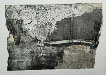 于子亮以“废弃材料再生与综合技法创新”为主线,现场演示综合版画全流程创作。他选用废弃三合板为基底,通过牛仔布拼贴、胶粉刮刻构建肌理,运用金刚砂颗粒处理画面黑白灰层次,并创新采用“白胶勾线”技法塑造具象细节。在印刷环节,通过油墨厚薄控制、多色叠加及压印技巧,最终完成融合抽象肌理与写实元素的作品。其强调“综合版画需将材料实验的偶然性转化为艺术语言”,现场直观呈现了跨媒介创作的实验性特征。