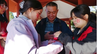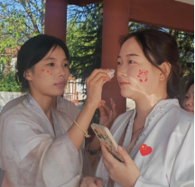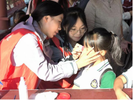 恰逢其时,同祝祖国。国庆节假期期间,beats365唯一官网组织“小画笔,大服务”社会实践团队,借画笔为祖国喝彩,以面彩绘画形式围绕“喜迎新中国75周年华诞”主题为芒砀山景区游客免费进行面部绘画,向祖国母亲献礼,用色彩与创意诠释爱国之情,用庄重而美丽的红色与黄色渲染最伟大的“中国”二字。
