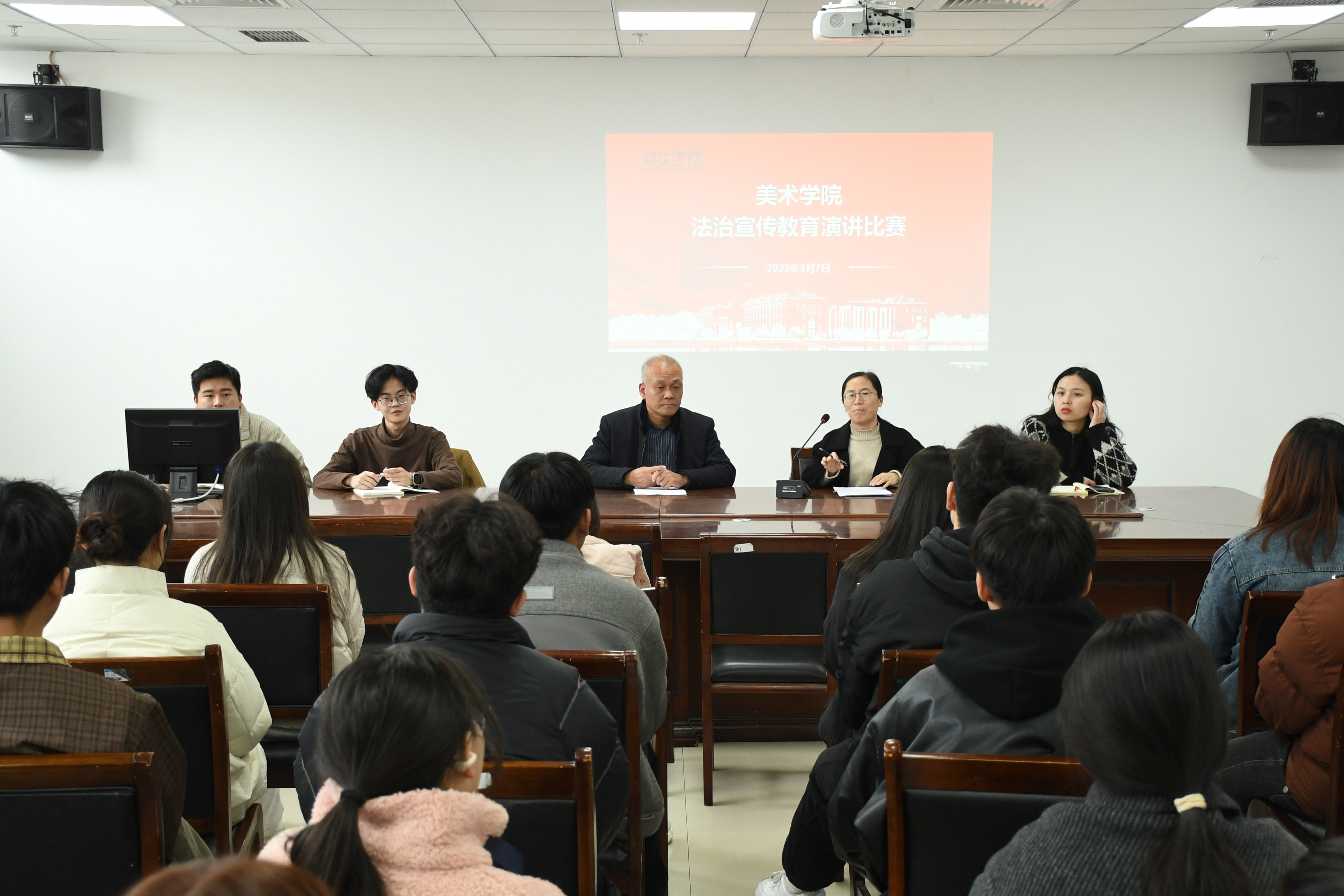 为深入贯彻法治理念,提升美院师生法治素养,在校园内营造浓厚的学法、守法、用法氛围,3月7日,beats365唯一官网于218会议室开展法治宣传教育演讲比赛,公司党委副书记付松山、各年级辅导员、参赛选手及员工代表参加本次活动。