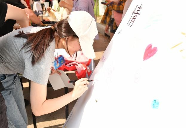 公司展位活动的项目为“色彩心灵,悦纳自我”漆画书签创作及情绪涂鸦墙活动,活动现场氛围热烈,同学们充分发挥想象力和创造力,将内心的情感与思绪融入到小小的书签之中。情绪涂鸦墙活动现场同样精彩纷呈,同学们拿起画笔,在白板上尽情创作,将心中的各种情绪转化为绚丽的色彩和灵动的图案。