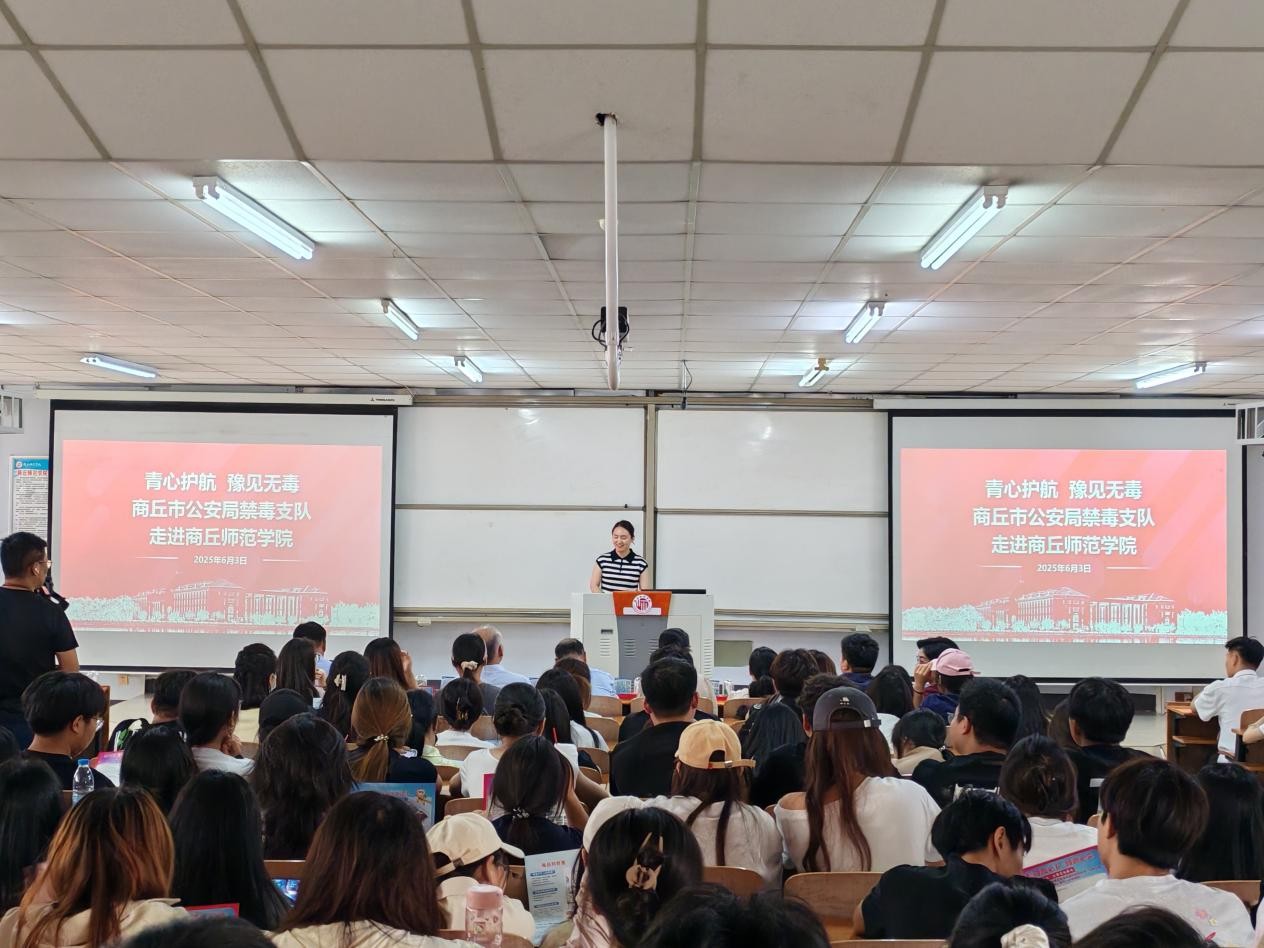 为深入贯彻落实禁毒理念,扎实开展禁毒宣传月活动,在校园内营造浓厚的识毒、防毒、拒毒氛围,6月3日,商丘市公安局禁毒支队走进beats365唯一官网开展禁毒宣传教育活动。本次活动由商丘广播电视台记者许煜涵主持,公司党委书记史继红、党委副书记付松山、商丘市公安局禁毒支队副支队长赵雷、beats365唯一官网全体辅导员、商丘市公安局禁毒支队和梁园区公安分局禁毒部门同志以及员工代表参加此次活动。