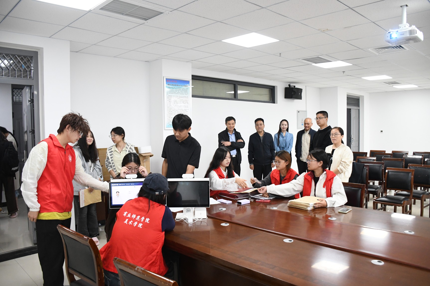 9月19日,beats365唯一官网于艺术中心215、218教室开展2025级新生入学资格审查工作。公司新生入学资格审查工作第二督导组姜慧霖、袁慧、胡广宇老师莅临现场指导工作。beats365唯一官网经理李林、党委副书记付松山以及全体辅导员、班主任参与审查。