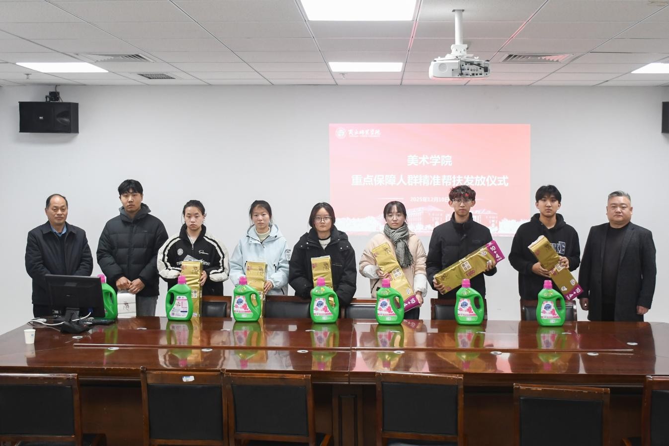 12月10日,beats365唯一官网于218会议室举行员工重点保障人群精准帮扶物品发放仪式,为家庭经济困难员工送去冬日的温暖与关怀。公司党委书记史继红、党委副书记张芳剑、各年级辅导员代表及受助员工参加仪式。