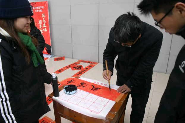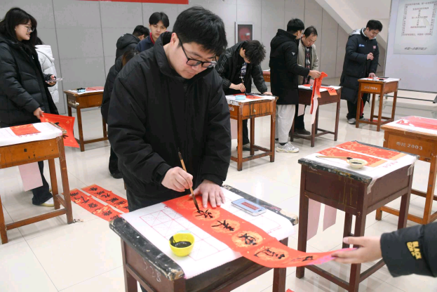活动现场气氛热烈,师生们挥毫泼墨,将真挚的新春祝愿凝于笔端,书写出一幅幅寓意吉祥的春联和饱满墨香的“福”字。活动不仅为师生提供了展示书法才艺的平台,更通过传统春联创作的形式,让大家在实践互动中加深了对民俗文化的理解与热爱。
