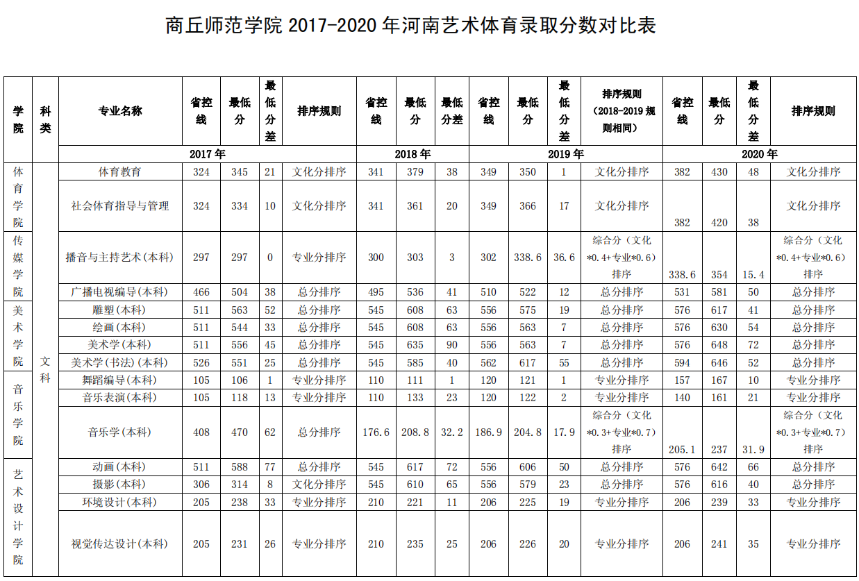 商丘师院2017--2020年艺术体育类录取分数线.pdf