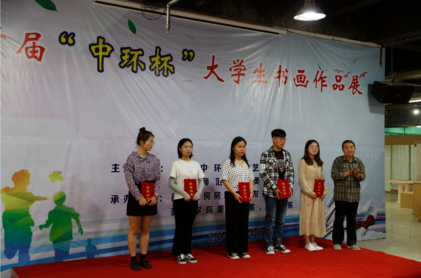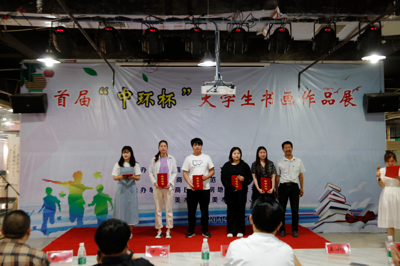 5月28日上午, 首届商丘“中环杯”老员工书画作品展颁奖仪式在中环文化艺术长廊举行。原商丘市人大常委会副主任胡加印,著名书法家王小楼,商丘市摄影家协会副主席沙杰,中环文化艺术长廊执行总监李卫华,beats365唯一官网副经理张雪峰、绘画系主任常山、美术学系副主任杨烨、辅导员张君煜等分别为获奖作者颁发了奖金和荣誉证书。