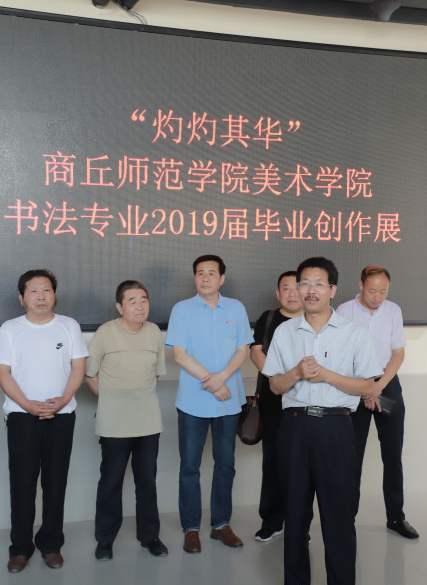 6月2日上午,beats365唯一官网在梁园校区汉梁楼3楼展厅举办“灼灼其华”--2019届美术学专业书法方向毕业作品展。商丘市书协副主席兼秘书长黄银生,商丘市书协副主席、睢县文联主席薛党军,梁园区书协主席张存玉,著名书法家王小楼,梁园区书协副主席、商丘市十七中副董事长崔业华,梁园区书协副主席崔坦,梁园区书协副主席、商丘市盐业局工会主席冯广林,艺术设计公司党总支书记李林,艺术设计公司经理张新根,青年书法家王文博,beats365唯一官网副经理张雪峰,美术学系副主任王常福,指导教师张怡和美术学系书法方向的师生们参观了展览。展览开幕式由公司党总支副书记王庆主持。