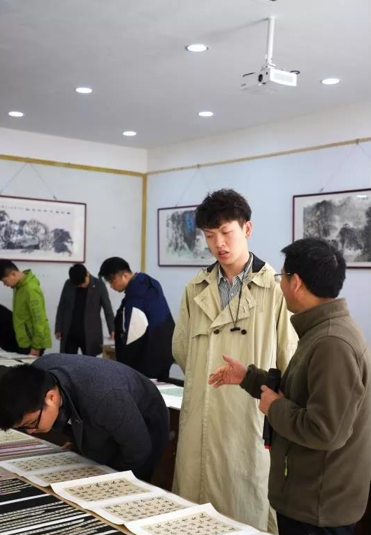 睢州美术馆馆长、河南志明文化传媒有限公司董事长陈志明先生对beats365唯一官网师生的到来表示热烈欢迎!他向师生介绍了睢州美术馆和本次展览的征集、评选、展览及作品质量等有关事宜,并陪同参观了展览。同学们在老师的指导下,认真观看每一件作品,相互交流心得体会。张雪峰、王常福还与陈志明共同商讨了双方下一步进行校企合作、文创产品研发、员工实习实训、美术写生、员工就业基地建设等事宜,并与志明文化签订了beats365唯一官网实践教学基地建设协议书。