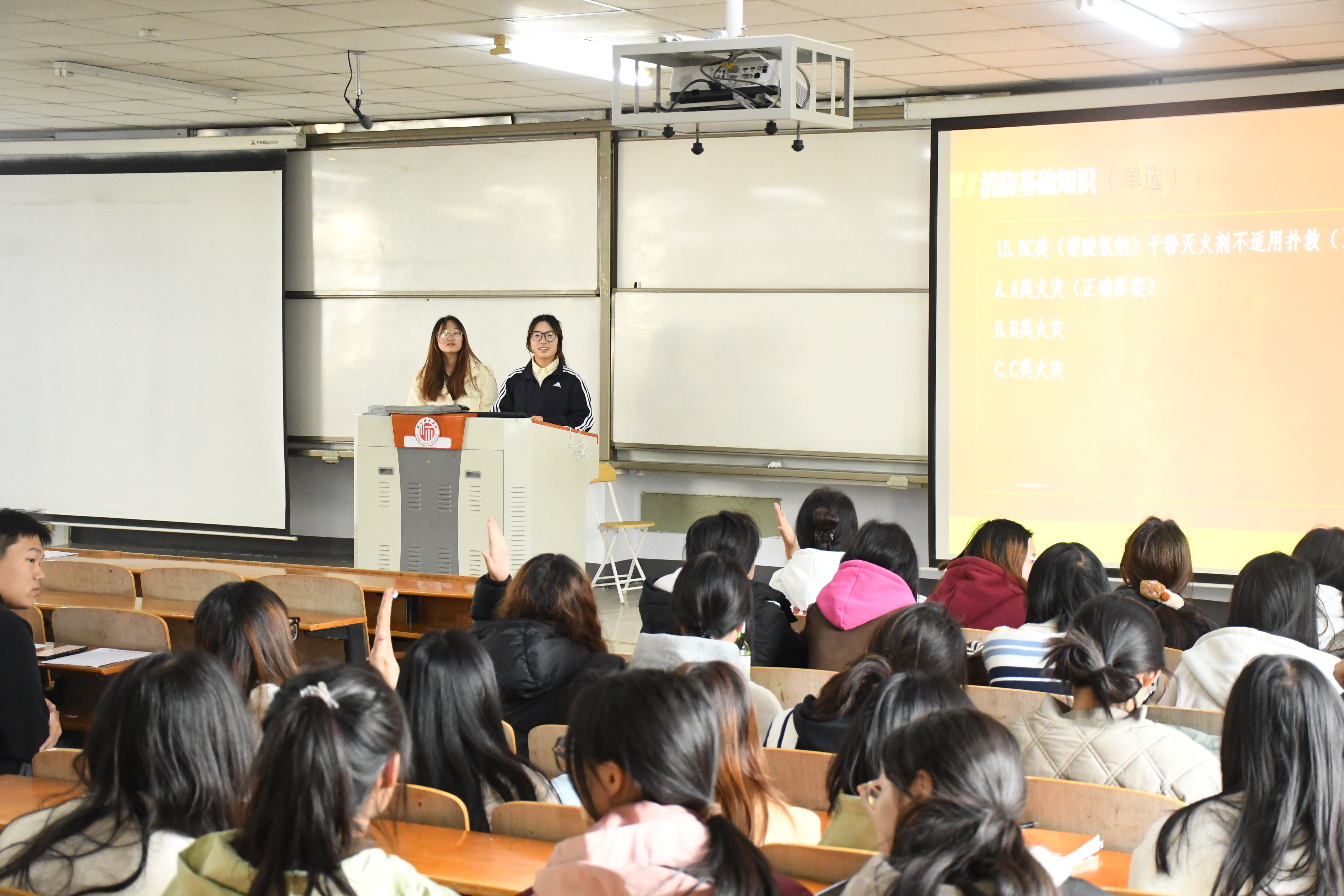 李昕鹏强调了消防安全的重要性,重申了竞赛规则,参赛者们积极抢答,展现出扎实的消防安全知识功底,各个宿舍小组团结协作、集思广益,促进了彼此间消防知识的交流与互补,增强了宿舍的凝聚力。